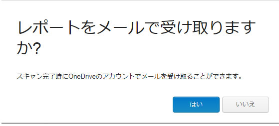 レポートを受け取りますか?ご希望に応じて選択して下さい。今回は、はいをクリックします。